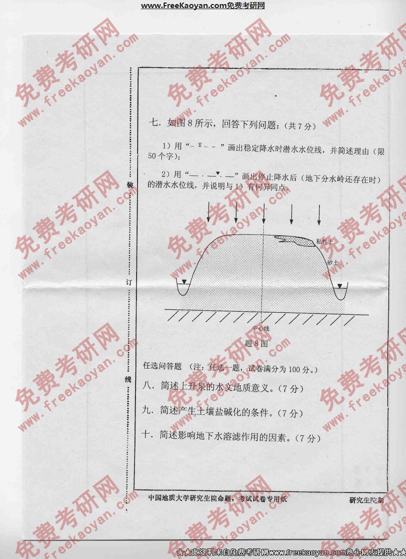 相关话题/考研真题 水文 中国地质大学 地质学