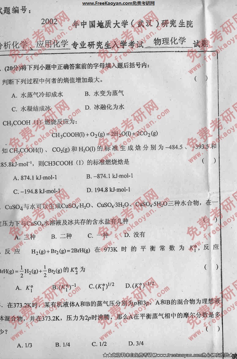 专业课考研经验 本站小编 FreeKaoyan 2018-01-23中国地质大学(武汉)2002年考研真题-普通地质学
