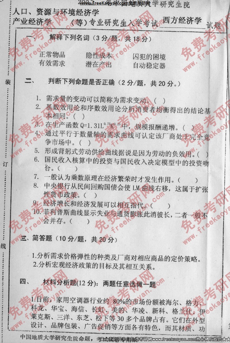 中国地质大学(武汉)2002年考研真题-西方经济学