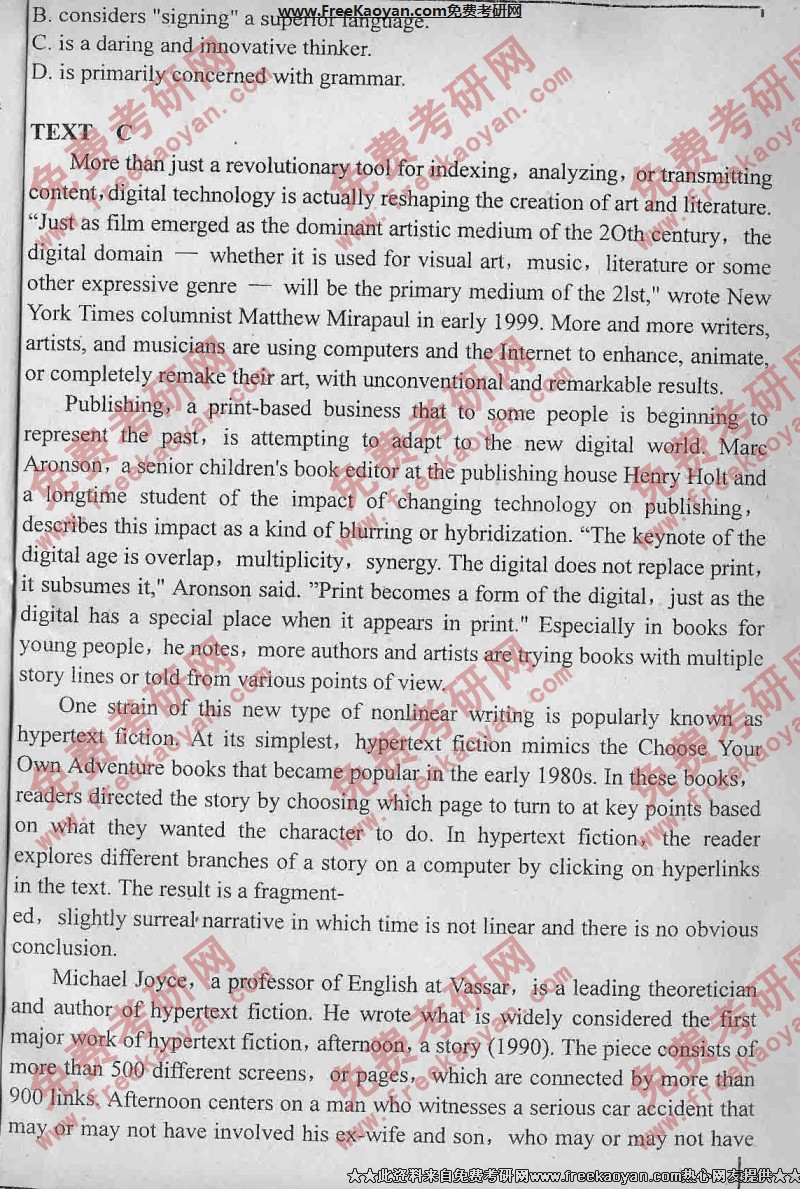 中国地质大学(武汉)2002年考研真题-英语综合考(4)