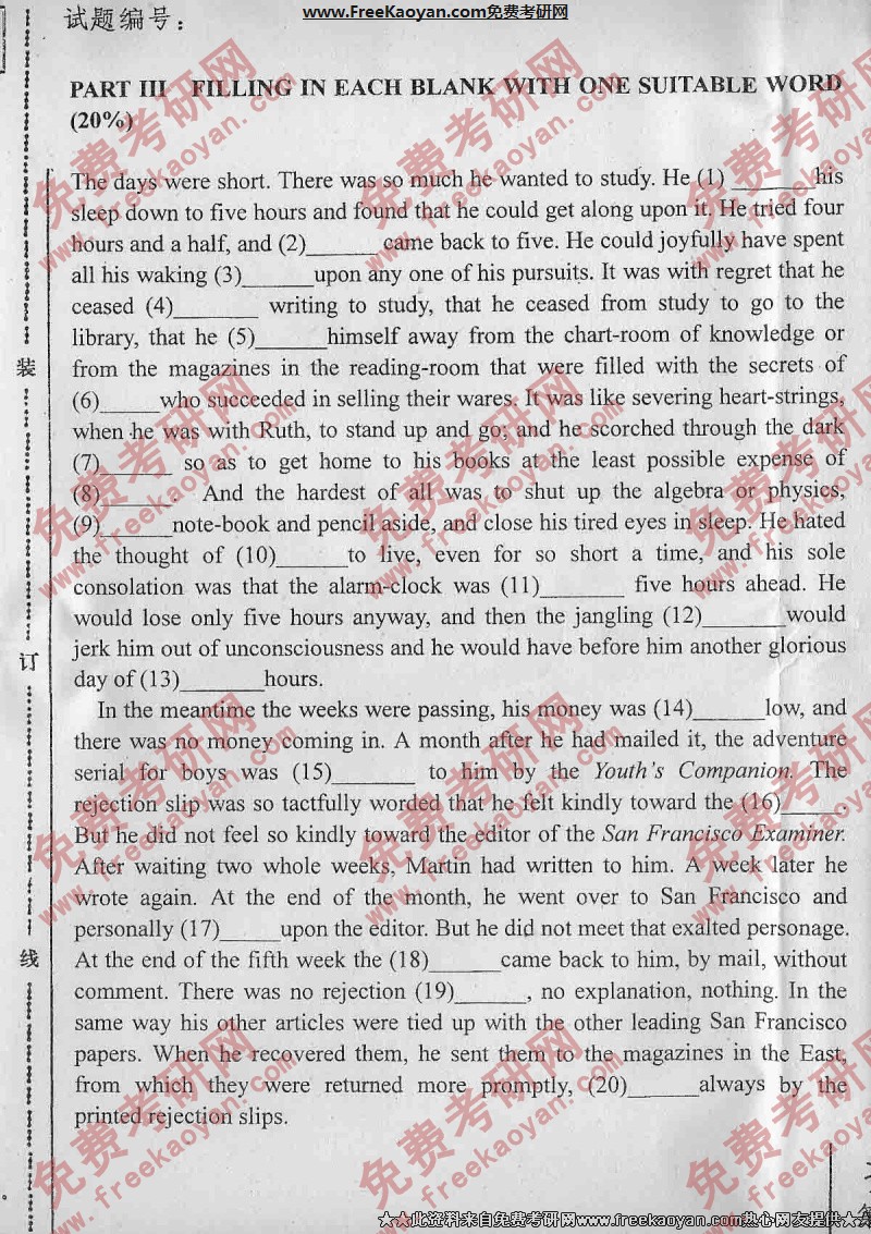 中国地质大学(武汉)2002年考研真题-英语综合考(9)