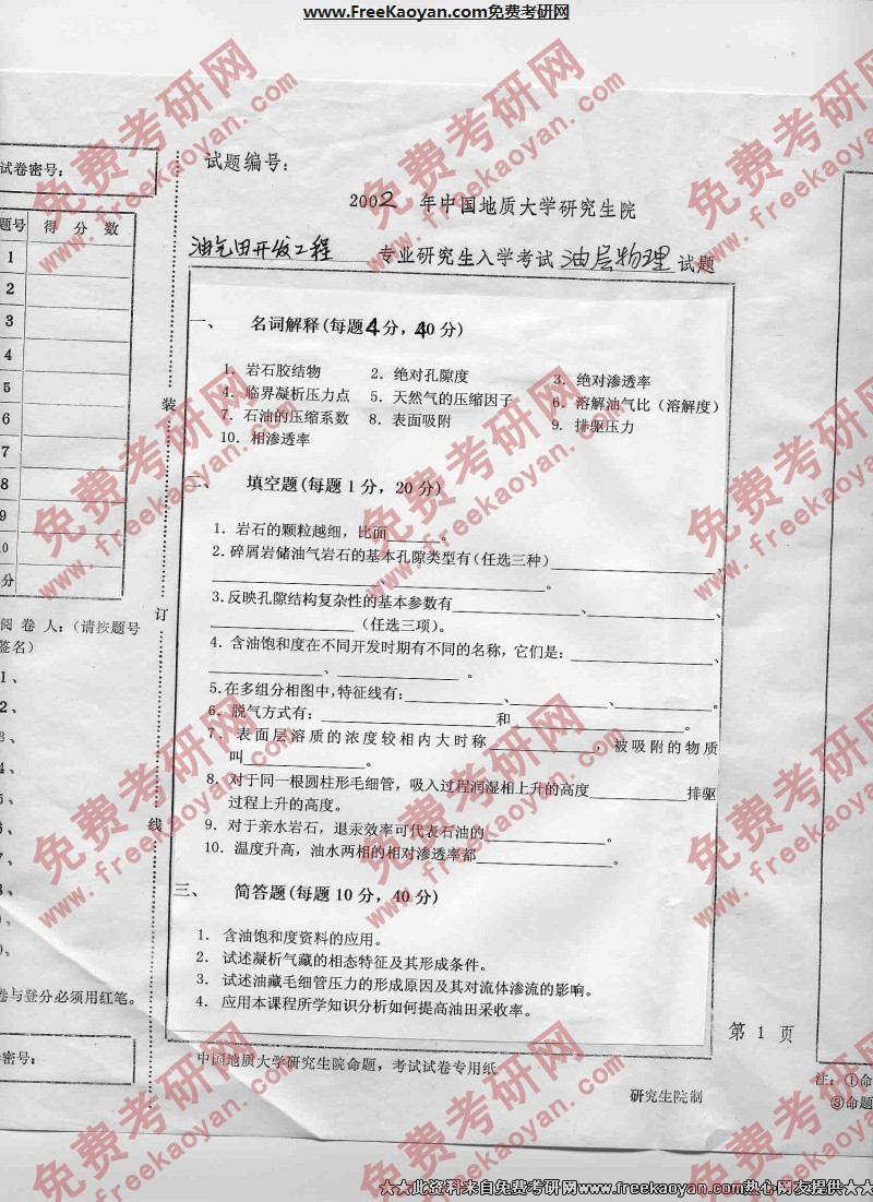 专业课考研经验 本站小编 FreeKaoyan 2018-01-23中国地质大学(武汉)2002年考研真题-石油及天然气地质学