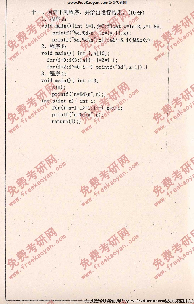 中国地质大学(武汉)2003年考研真题-C语言程序设计(2)