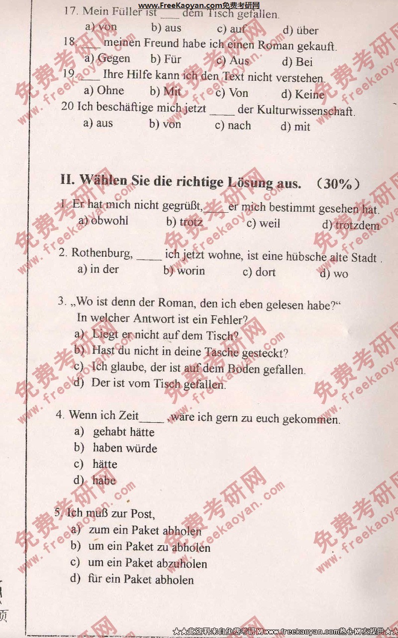 中国地质大学(武汉)2003年考研真题-德语(2)