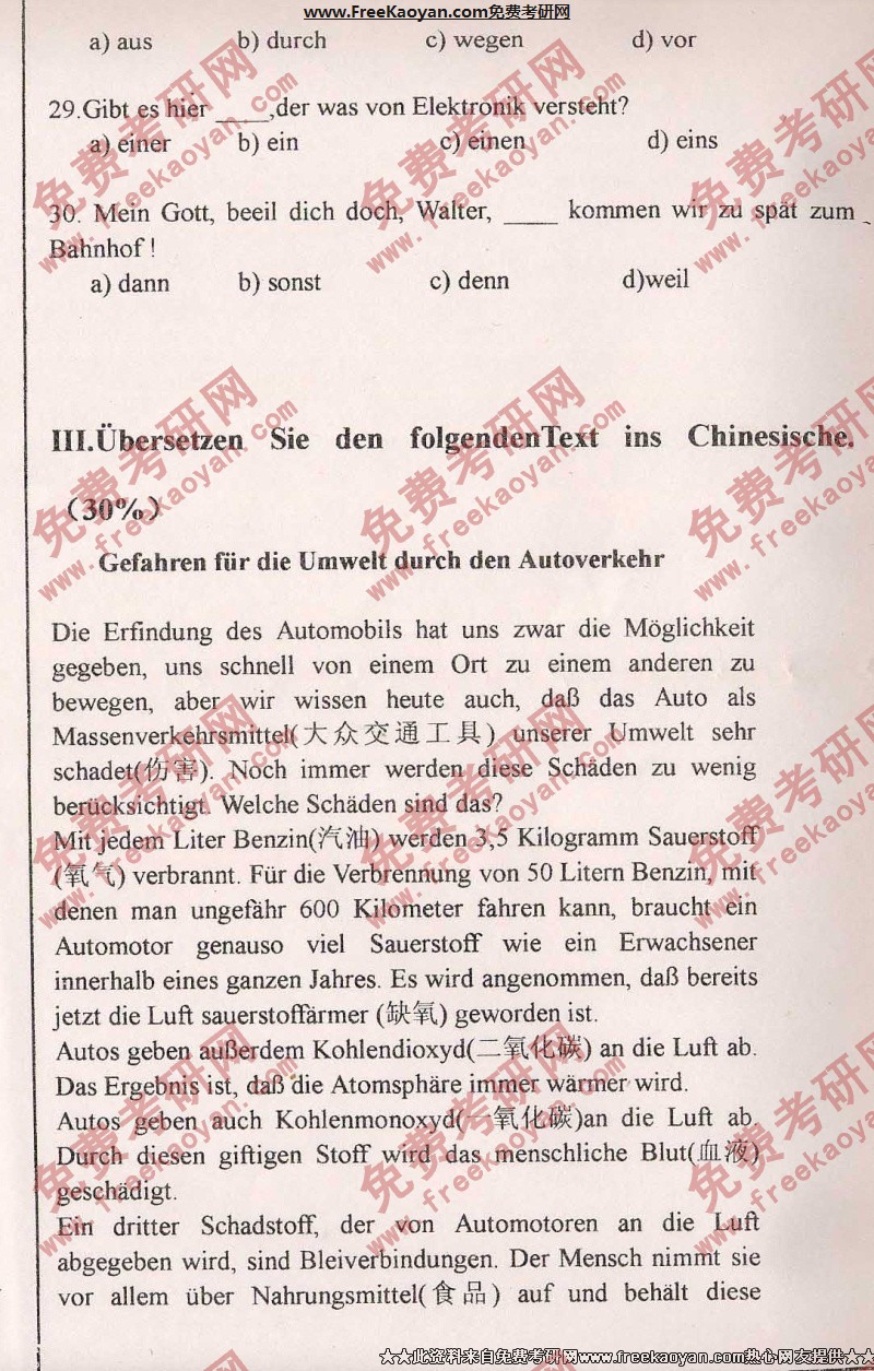 中国地质大学(武汉)2003年考研真题-德语(6)