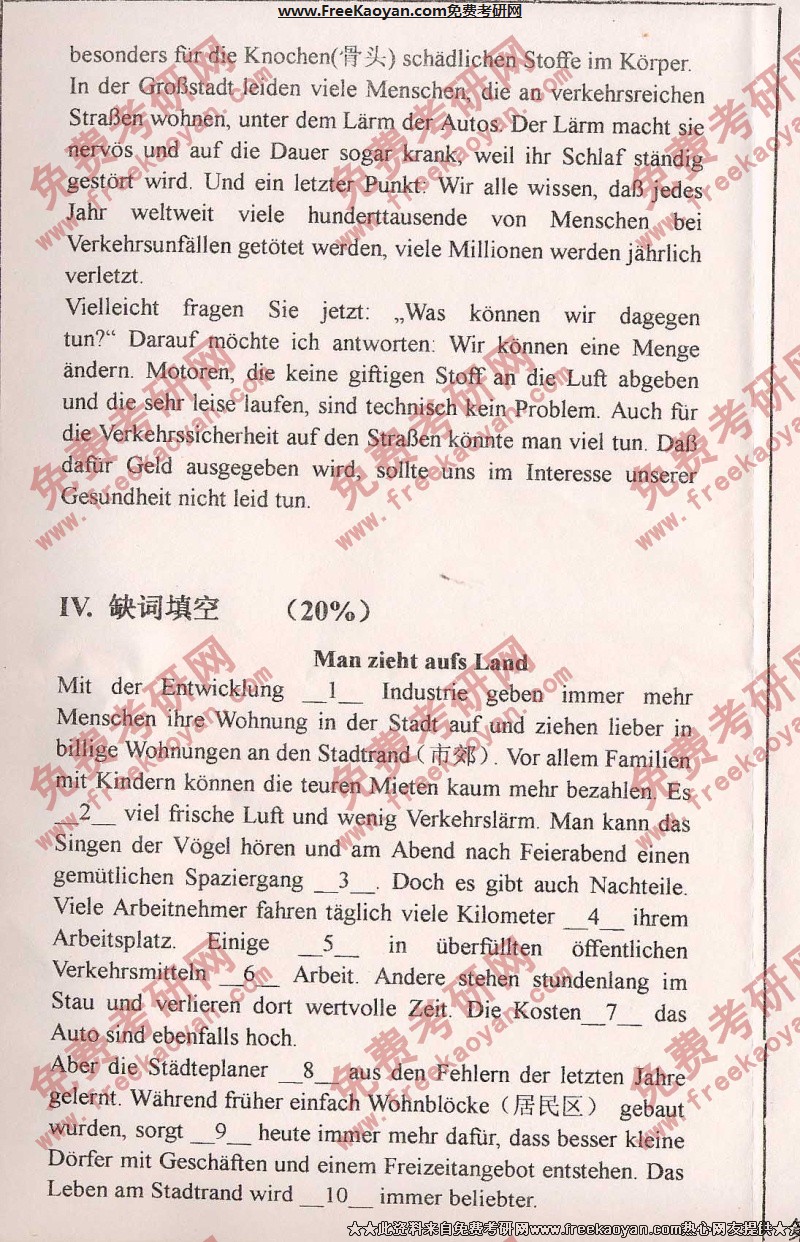 中国地质大学(武汉)2003年考研真题-德语(7)