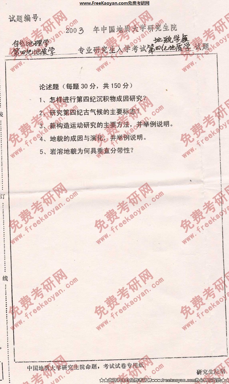 中国地质大学(武汉)2003年考研真题-地貌学与第四纪地质学