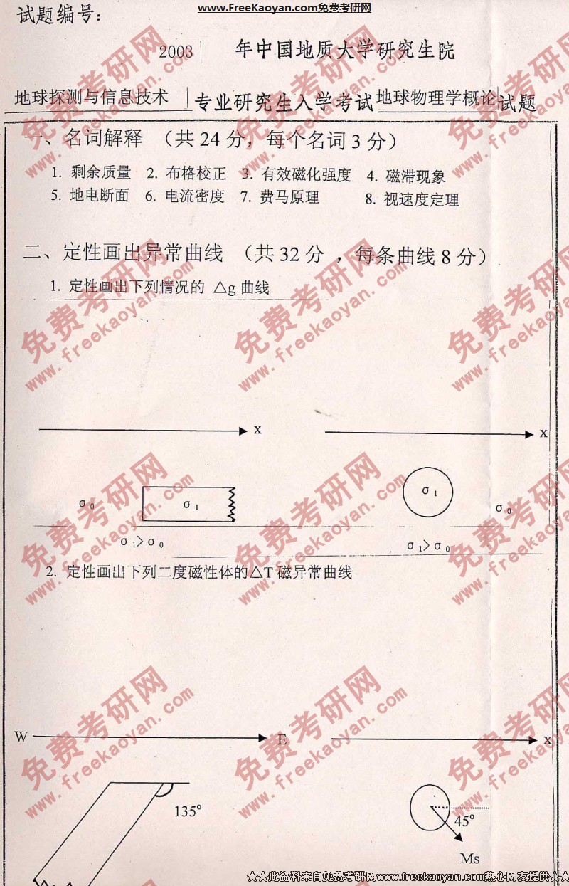 中国地质大学(武汉)2003年考研真题-地球物理学概论