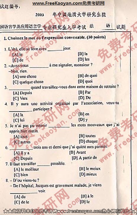 专业课考研经验 本站小编 FreeKaoyan 2018-01-23中国地质大学(武汉)2003年考研真题-德语