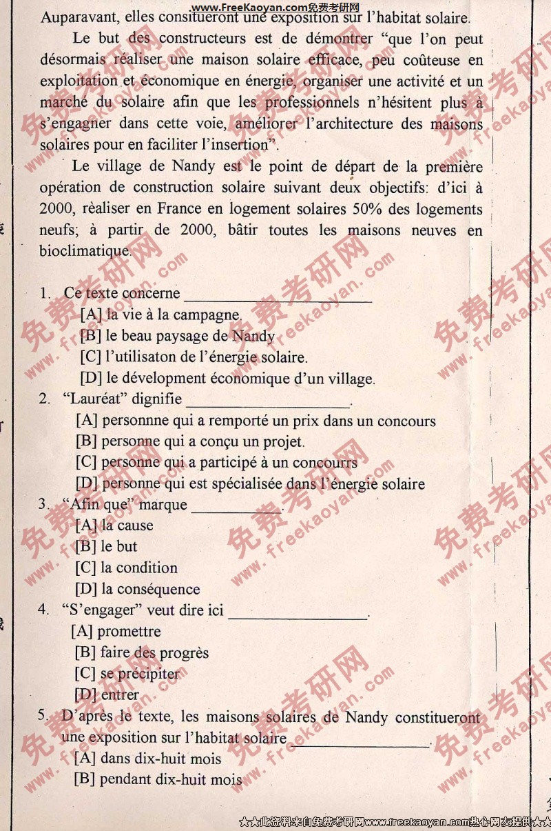 中国地质大学(武汉)2003年考研真题-法语(3)