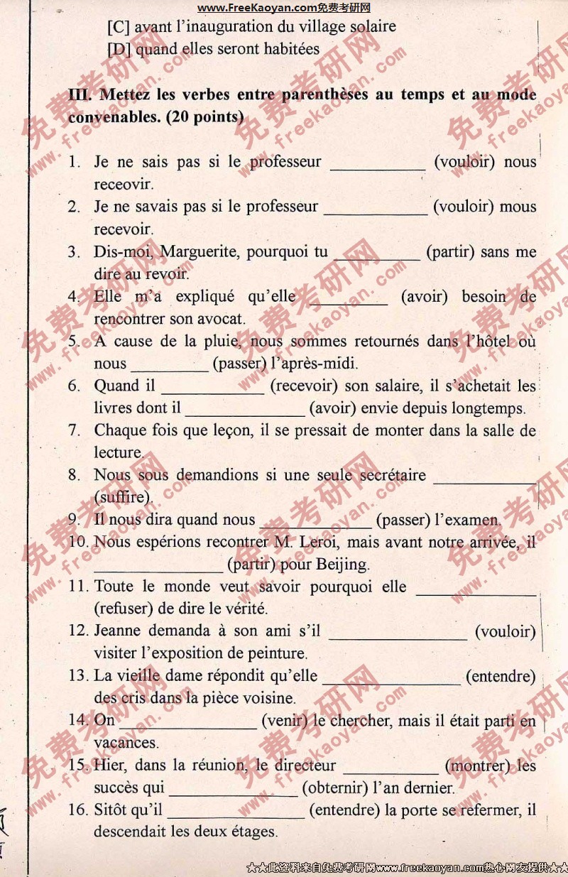中国地质大学(武汉)2003年考研真题-法语(4)