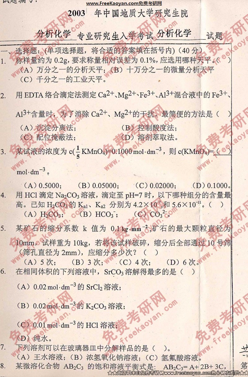 专业课考研经验 本站小编 FreeKaoyan 2018-01-23中国地质大学(武汉)2003年考研真题-地球化学
