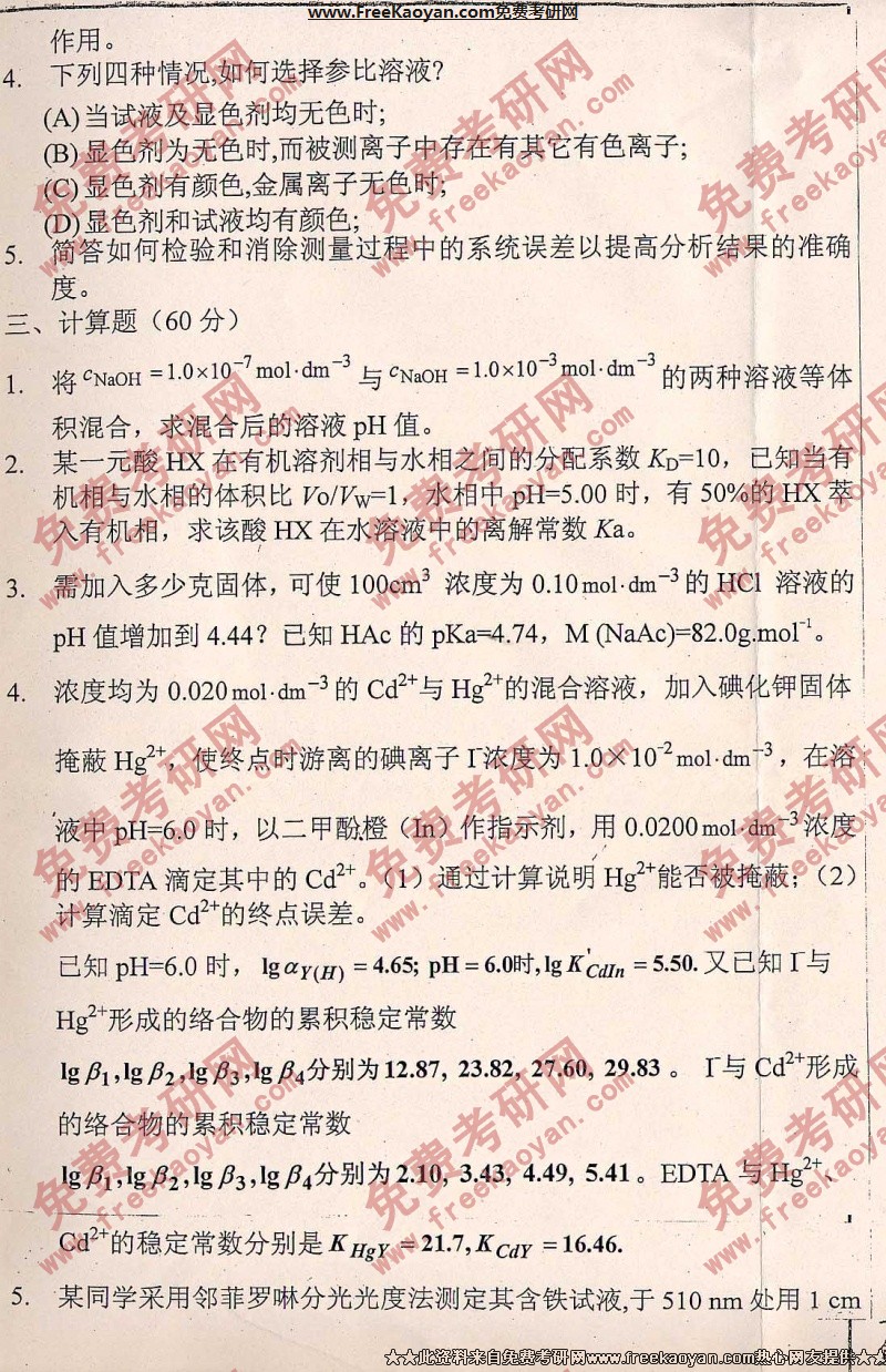 中国地质大学(武汉)2003年考研真题-分析化学(3)