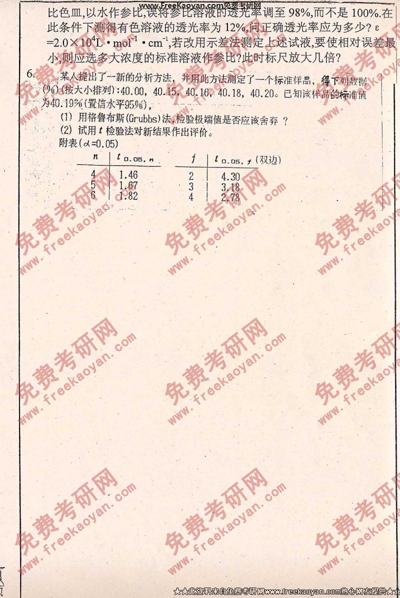中国地质大学(武汉)2003年考研真题-分析化学(4)