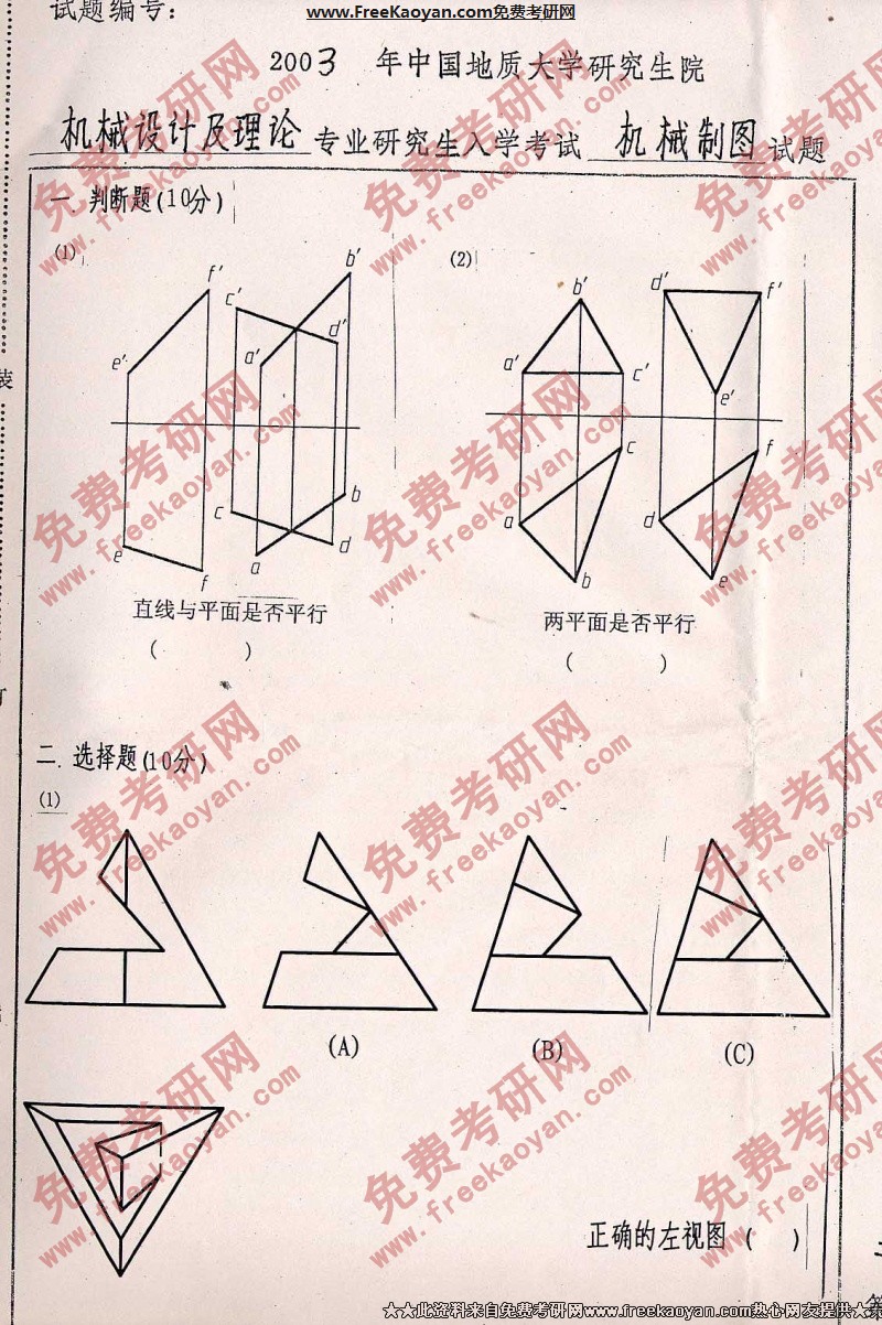 中国地质大学(武汉)2003年考研真题-机械制图