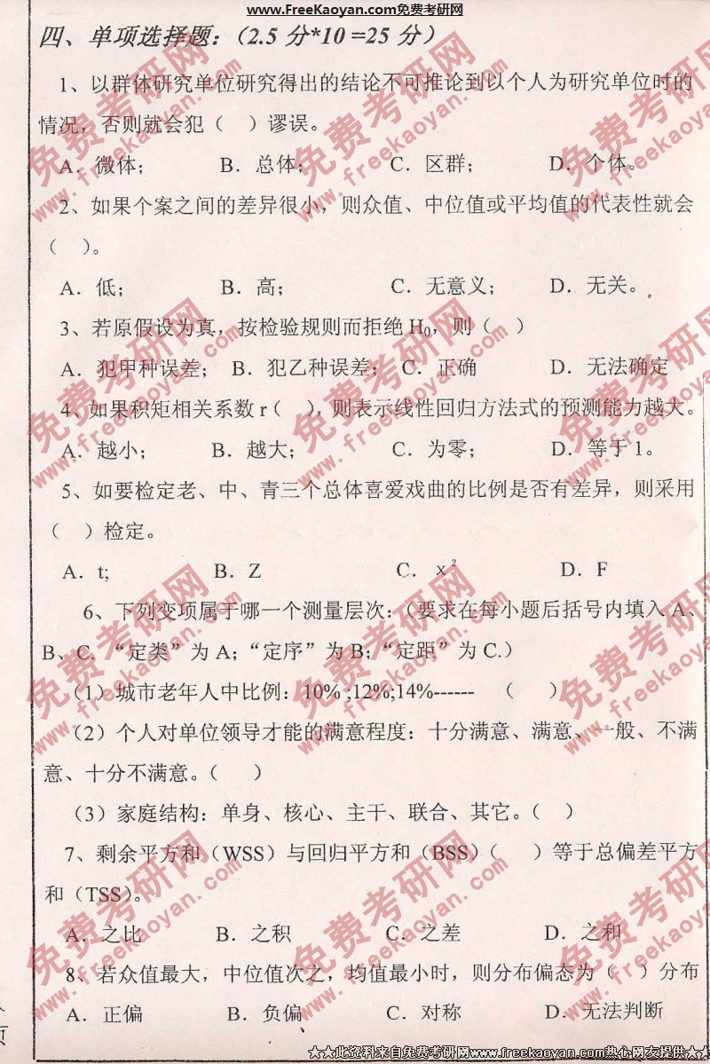 中国地质大学(武汉)2003年考研真题-社会统计学(2)