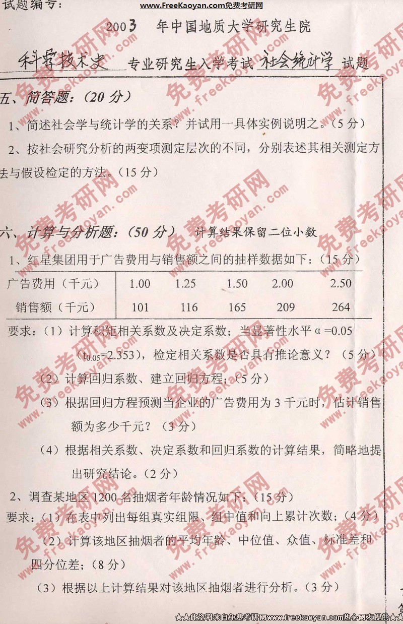 相关话题/考研真题 中国地质大学 统计学 社会