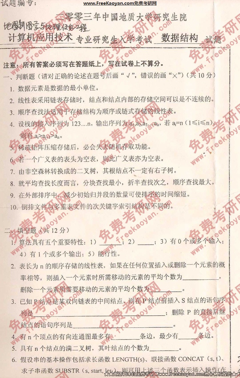 专业课考研经验 本站小编 FreeKaoyan 2018-01-23中国地质大学(武汉)2003年考研真题-国土资源学