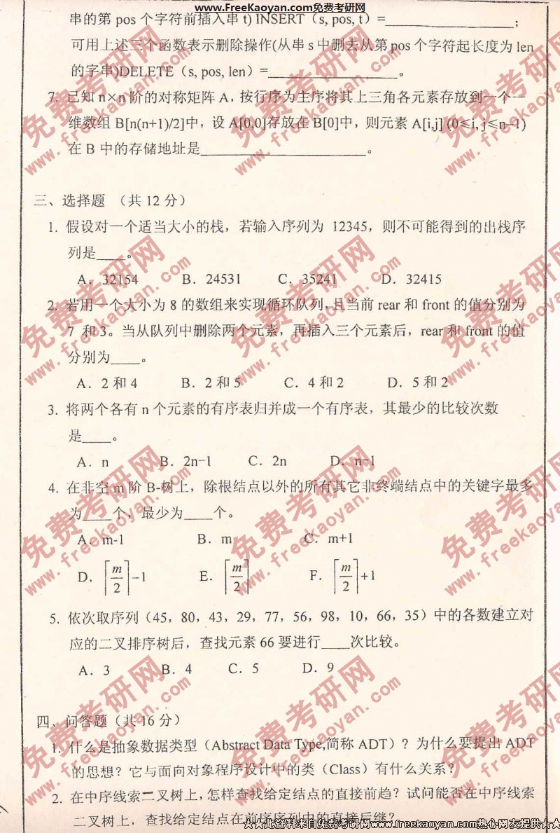中国地质大学(武汉)2003年考研真题-数据结构(2)