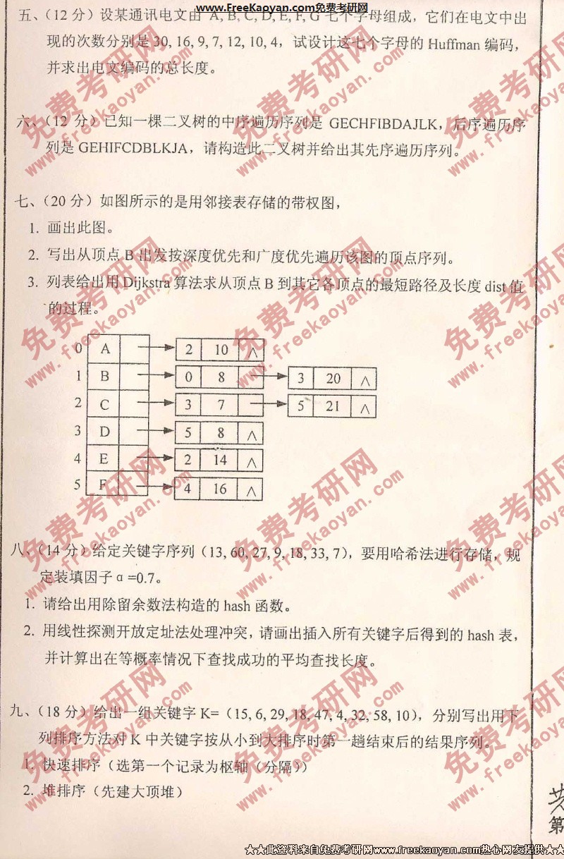 中国地质大学(武汉)2003年考研真题-数据结构(3)