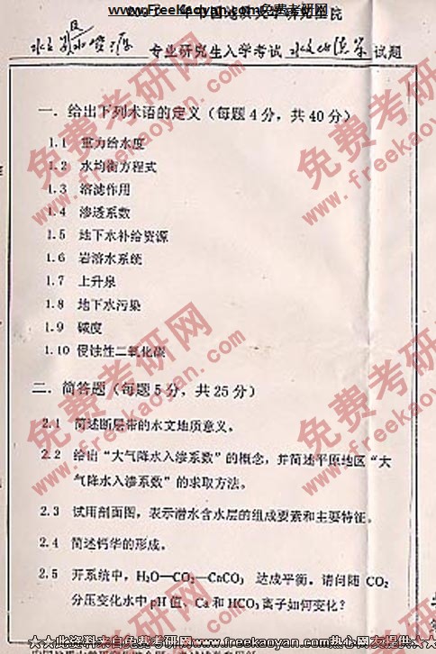 中国地质大学(武汉)2003年考研真题-水文地质学