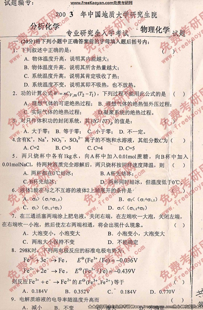 专业课考研经验 本站小编 FreeKaoyan 2018-01-23中国地质大学(武汉)2003年考研真题-普通地质学