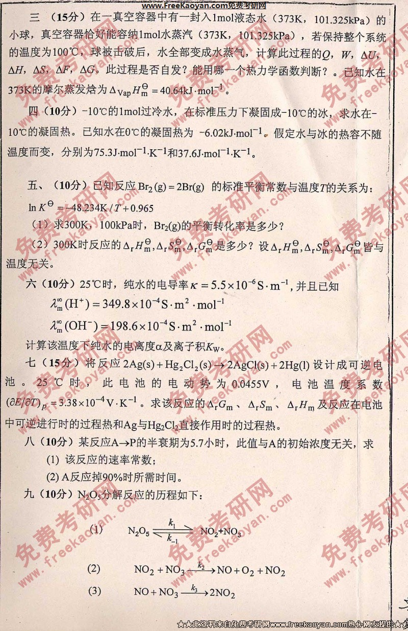 中国地质大学(武汉)2003年考研真题-物理化学(3)