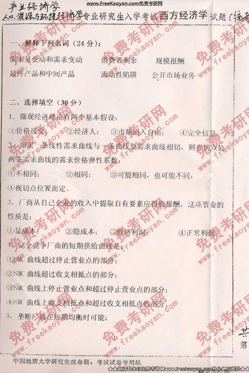 专业课考研经验 本站小编 FreeKaoyan 2018-01-23中国地质大学(武汉)2003年考研真题-土地经济学
