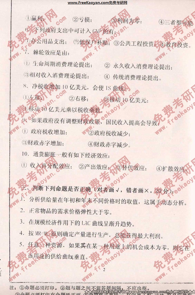 中国地质大学(武汉)2003年考研真题-西方经济学(2)