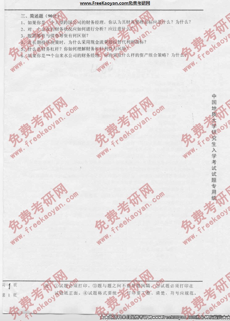 中国地质大学(武汉)2004年考研真题-财务管理(2)
