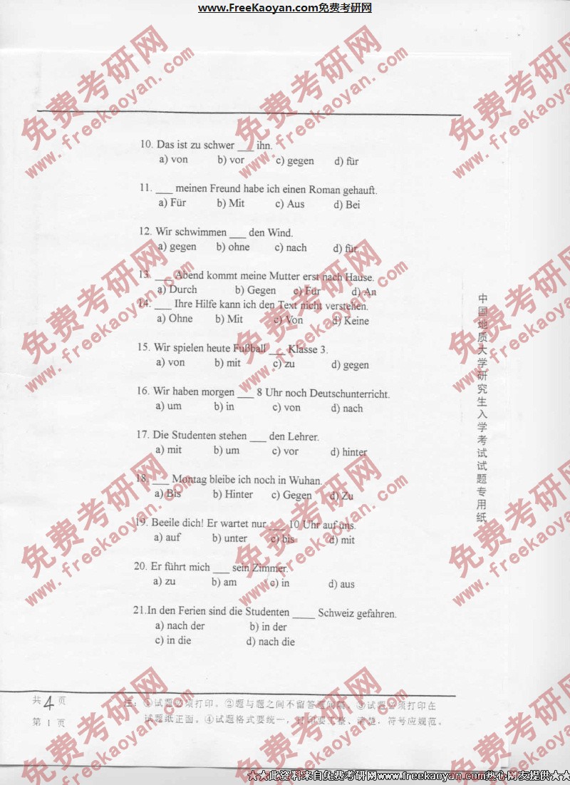 相关话题/中国地质大学 考研真题 德语