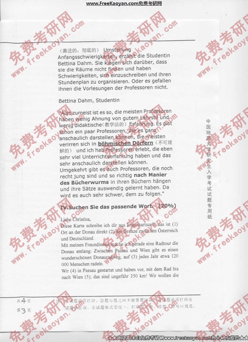 中国地质大学(武汉)2004年考研真题-德语(6)