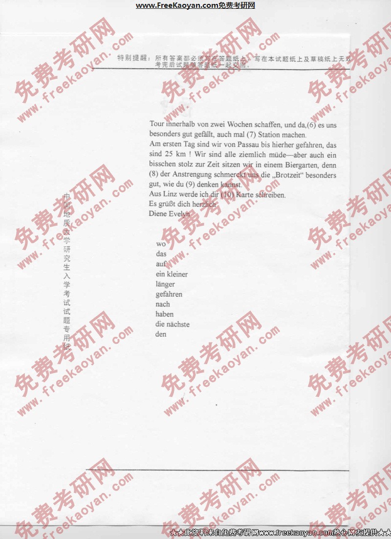 中国地质大学(武汉)2004年考研真题-德语(7)