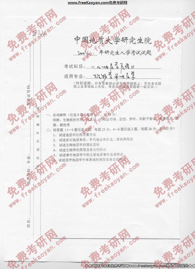 专业课考研经验 本站小编 FreeKaoyan 2018-01-23中国地质大学(武汉)2004年考研真题-