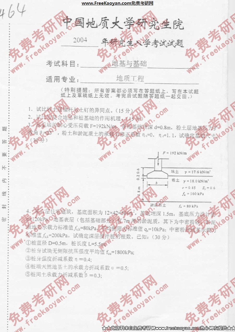 相关话题/考研真题 中国地质大学 基础 地基