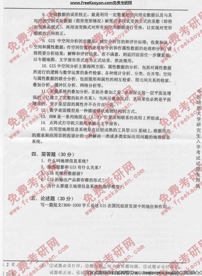中国地质大学(武汉)2004年考研真题-地理信息系统A(4)