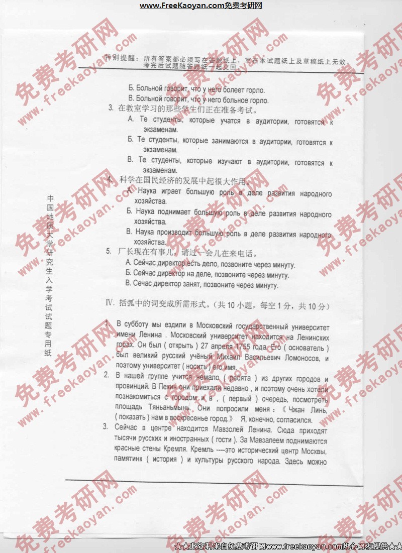 中国地质大学(武汉)2004年考研真题-俄语(二外)(3)