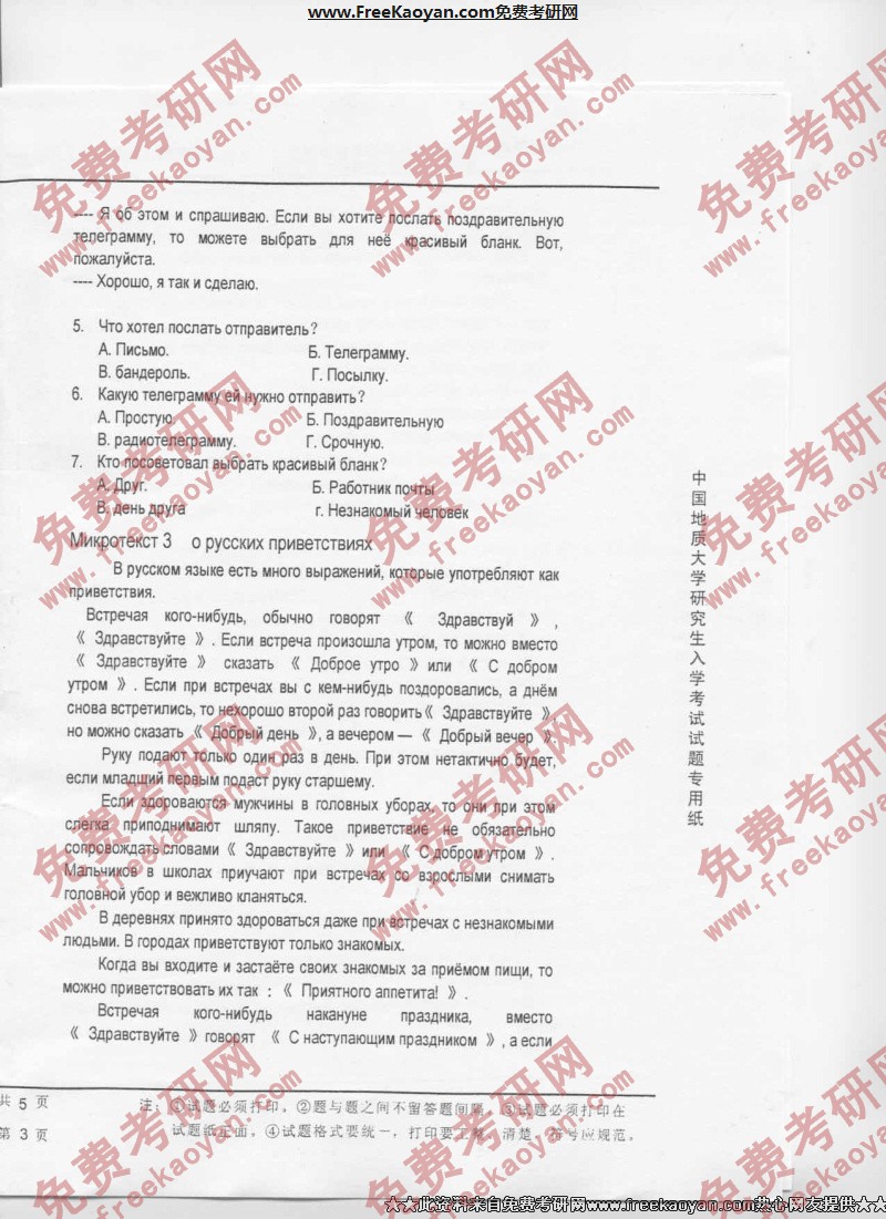 中国地质大学(武汉)2004年考研真题-俄语(二外)(6)