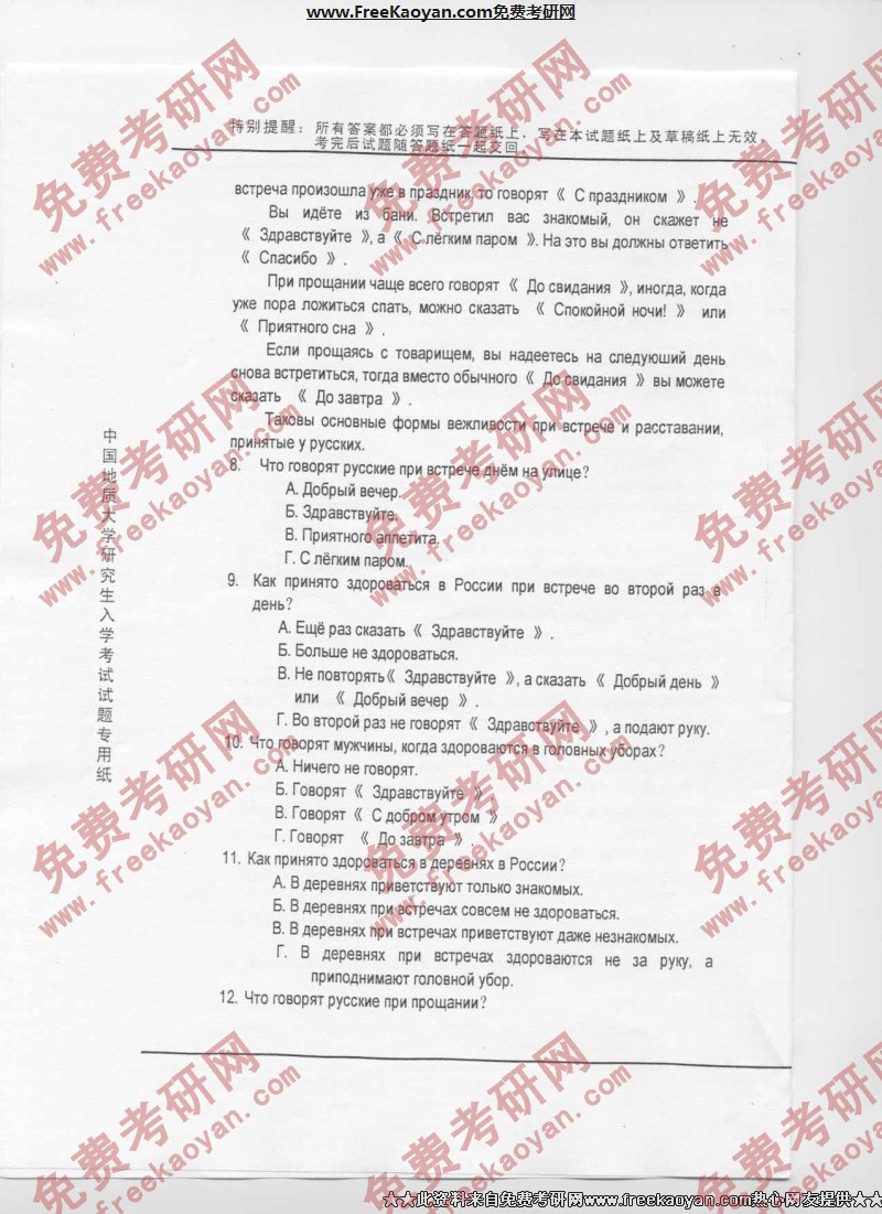 相关话题/中国地质大学 考研真题 俄语