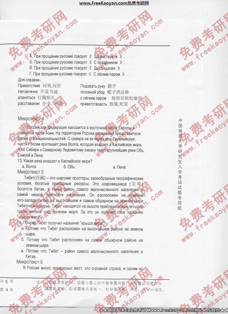 相关话题/中国地质大学 考研真题 俄语