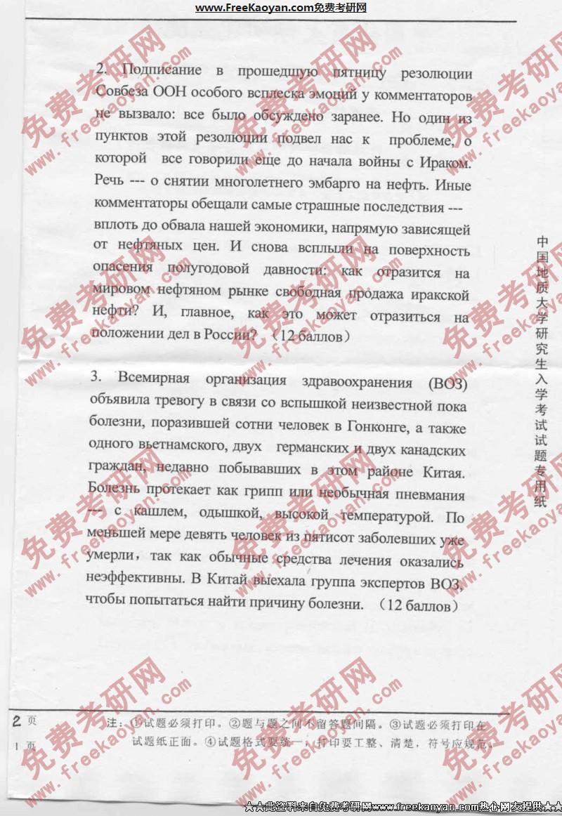 中国地质大学(武汉)2004年考研真题-俄语写译(2)