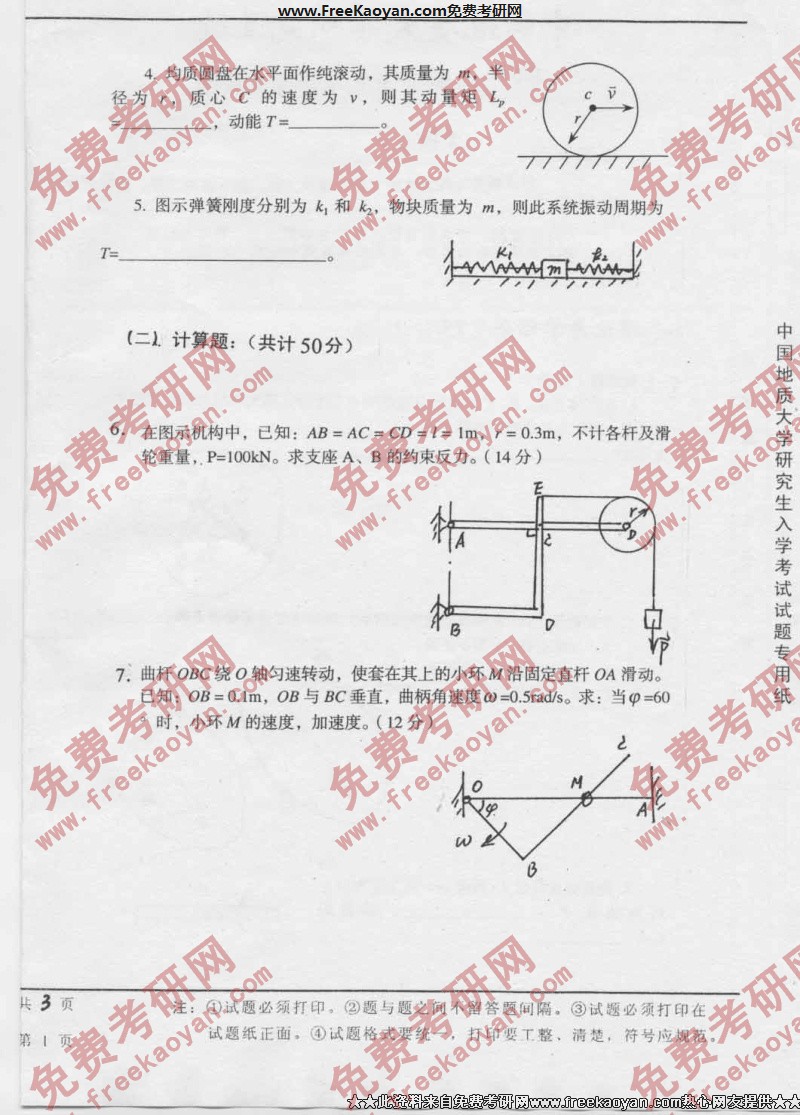 相关话题/中国地质大学 考研真题 工程力学