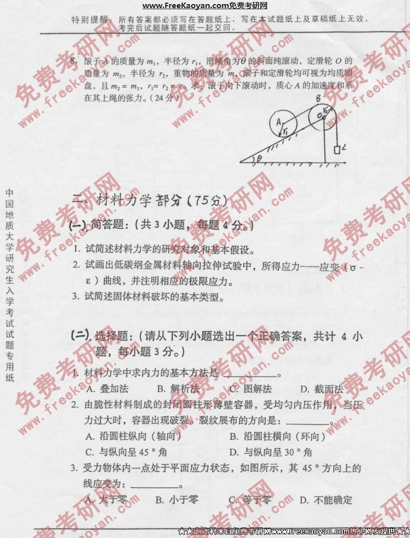 中国地质大学(武汉)2004年考研真题-工程力学(3)