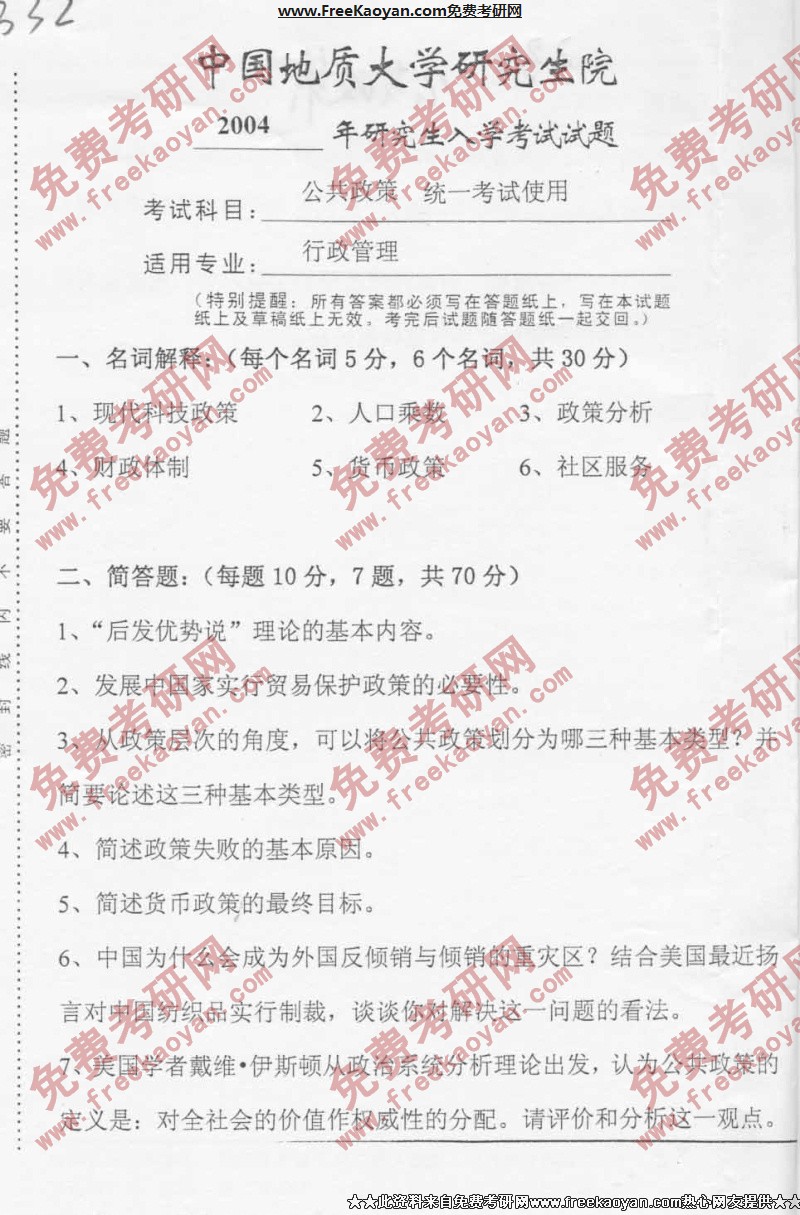 专业课考研经验 本站小编 FreeKaoyan 2018-01-23中国地质大学(武汉)2004年考研真题-翻译与写作