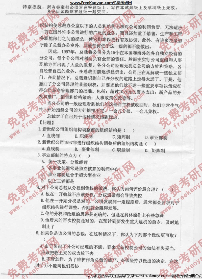 专业课考研经验 本站小编 FreeKaoyan 2018-01-23中国地质大学(武汉)2004年考研真题-管理学
