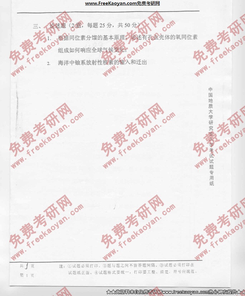 相关话题/考研真题 中国地质大学 地球化学 海洋