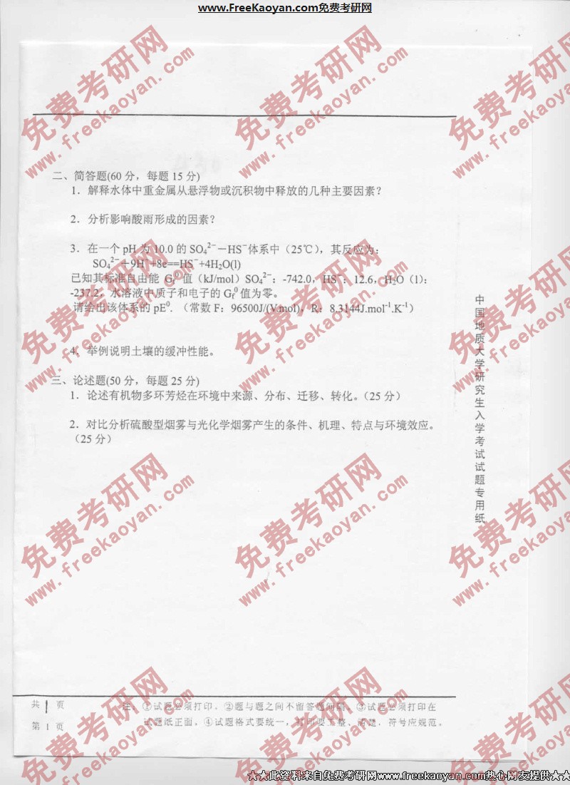 专业课考研经验 本站小编 FreeKaoyan 2018-01-23中国地质大学(武汉)2004年考研真题-环境地质学