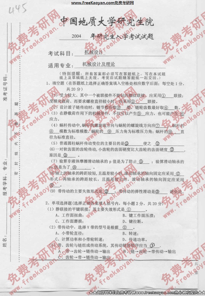 专业课考研经验 本站小编 FreeKaoyan 2018-01-23中国地质大学(武汉)2004年考研真题-古生物地史学