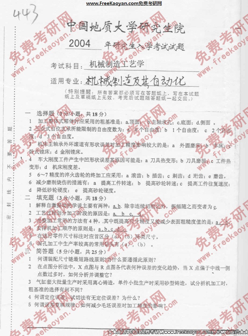 相关话题/考研真题 机械制造 中国地质大学 工艺学