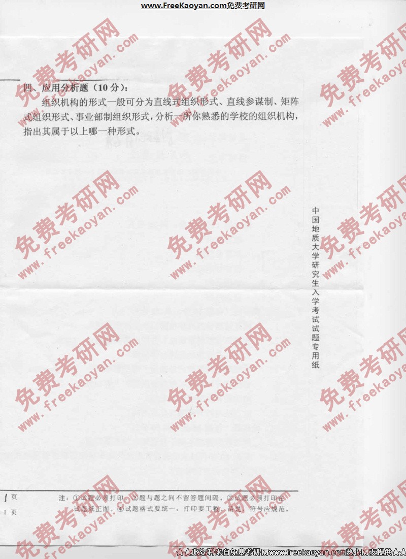 专业课考研经验 本站小编 FreeKaoyan 2018-01-23中国地质大学(武汉)2004年考研真题-管理学原理